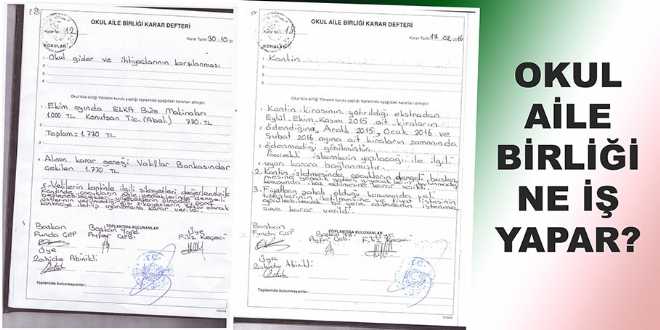 Okul Müdürü’nün tavsiyesi ile görev başına geldiği bilinen Okul Aile Birliği, Okul Müdürü ile ilgili soruşturmanın başlamasının ardından 17.02.2016 günü adeta olağan üstü toplanarak bazı kararlar aldı.